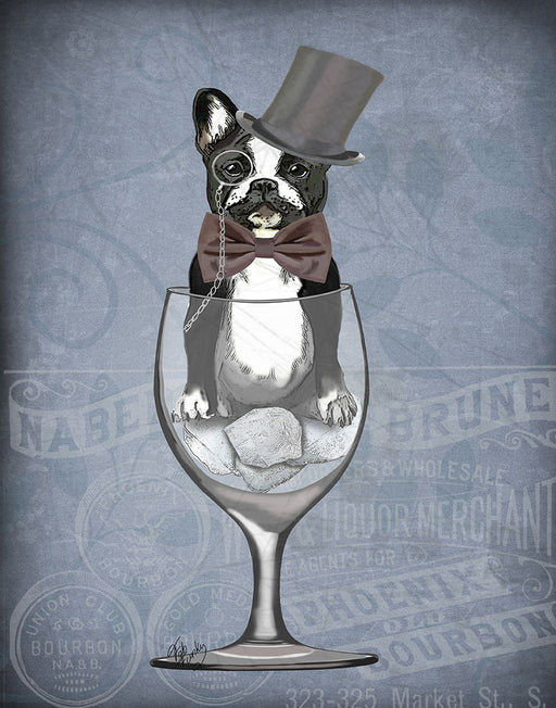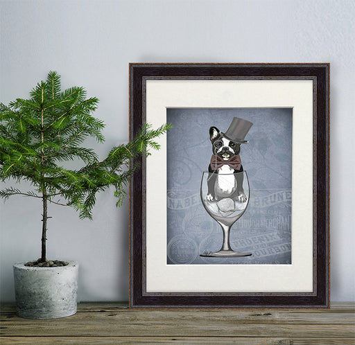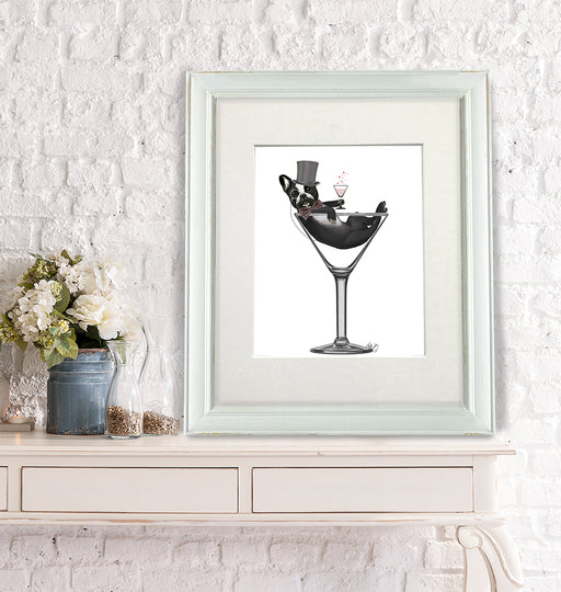 Boston Terrier in Cocktail Glass, Book Print, Dog Art Print, Wall Art