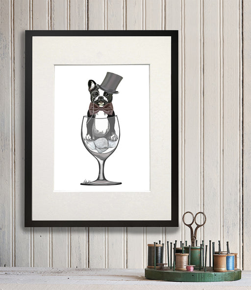 French Bulldog in Wine Glass, Book Print, Dog Art Print, Wall Art