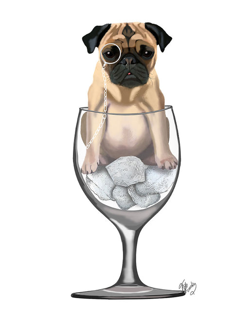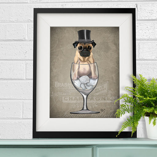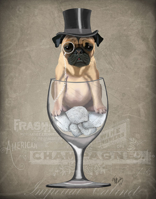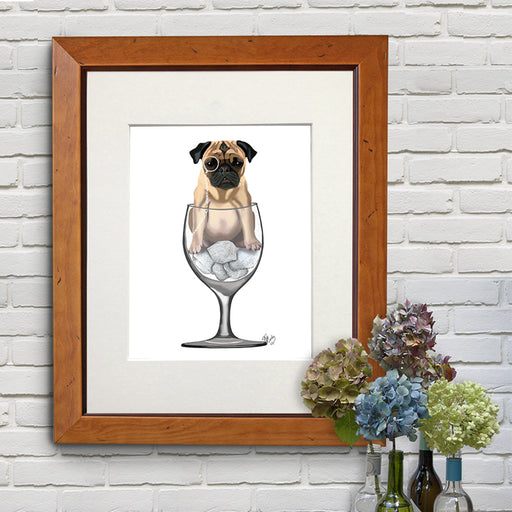 Pug in Wine Glass, Book Print, Dog Art Print, Wall Art