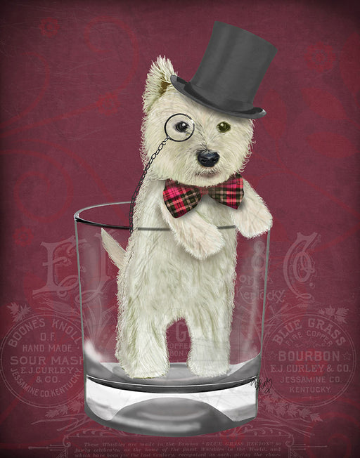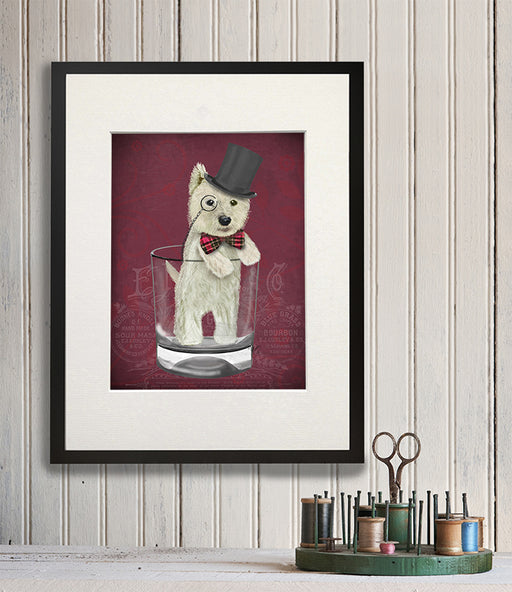 Westie in Whisky Tumbler, Book Print, Dog Art Print, Wall Art