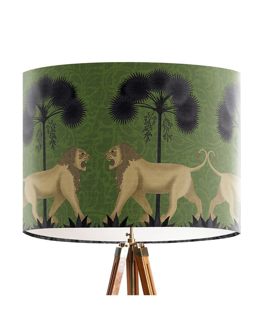 Lion Under Palm Verdant, Animalia, Lamp shade, Drum, Pendant Lighting
