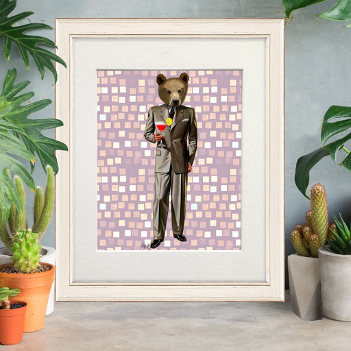 Bear With Cocktail, Animal Art Print, Wall Art