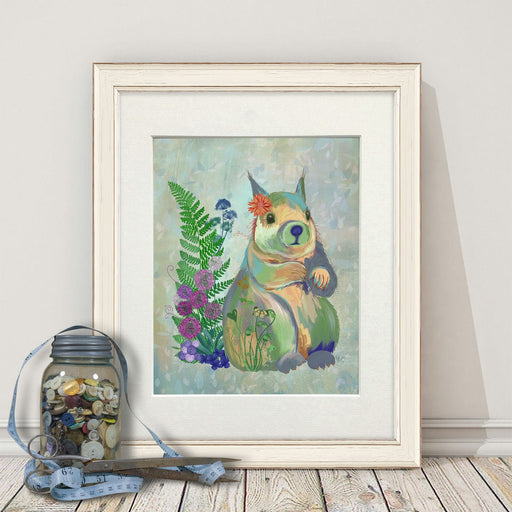 Country Lane Squirrel 2, Blue, Art Print