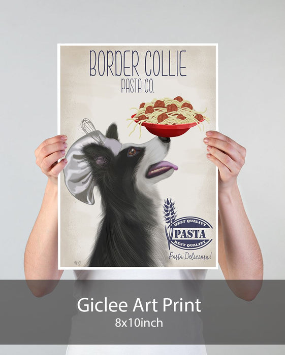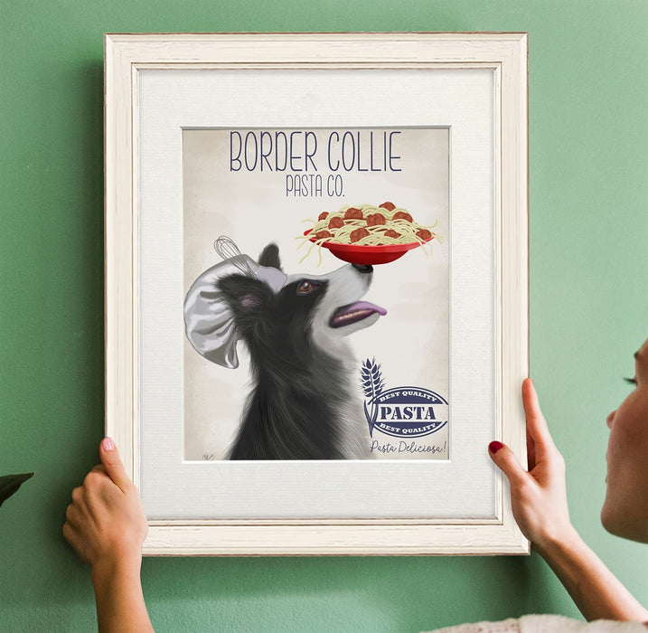 Border Collie Black White Pasta Cream, Dog Art Print, Wall art