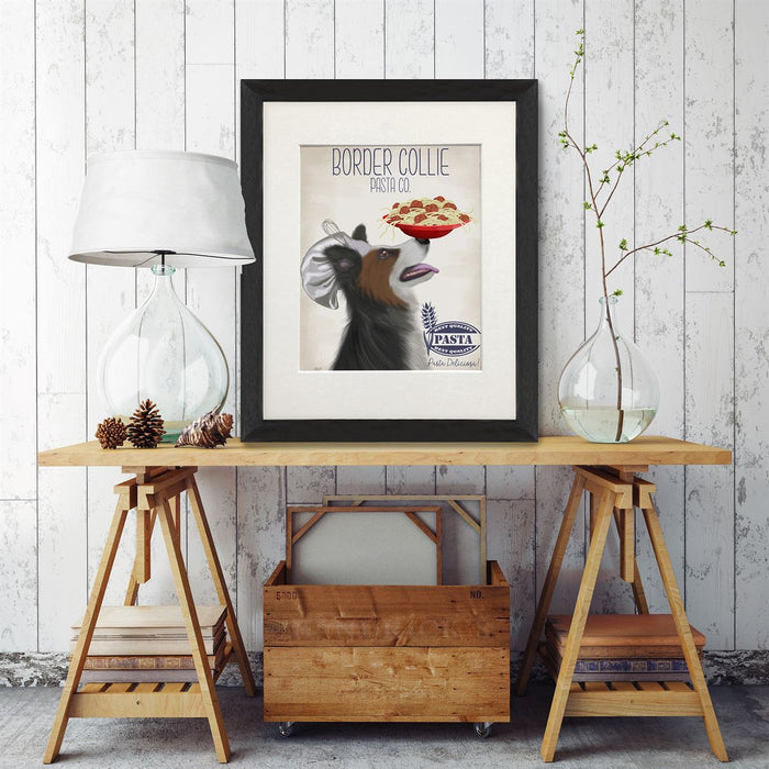 Border Collie Tricolour Pasta Cream, Dog Art Print, Wall art