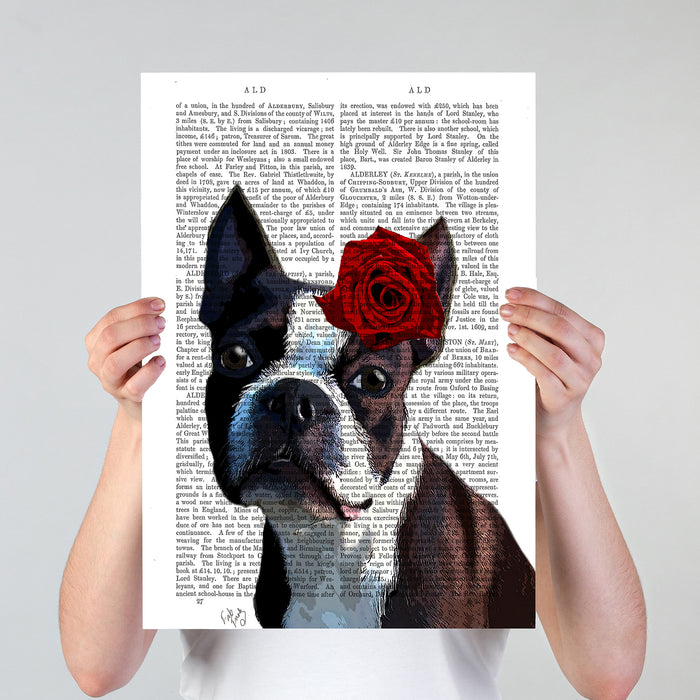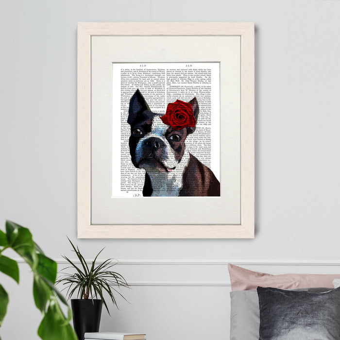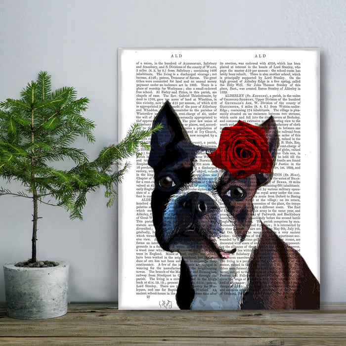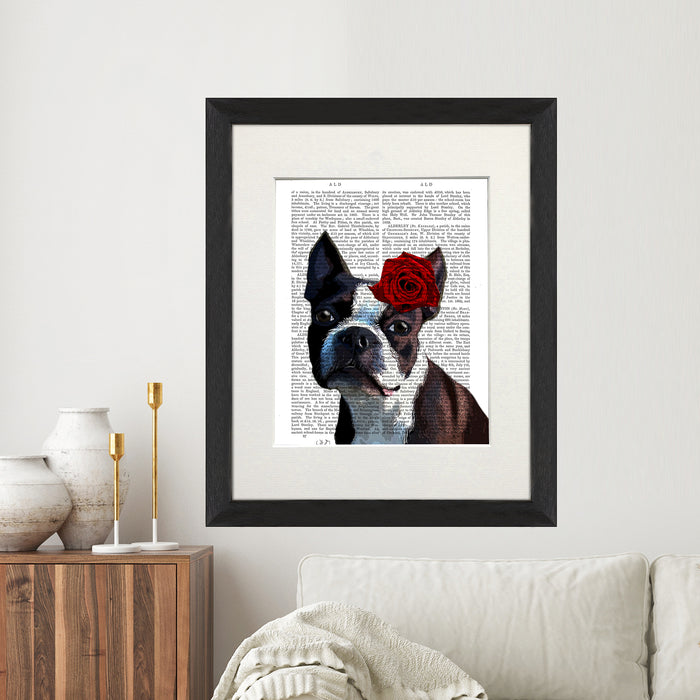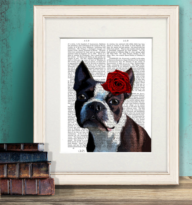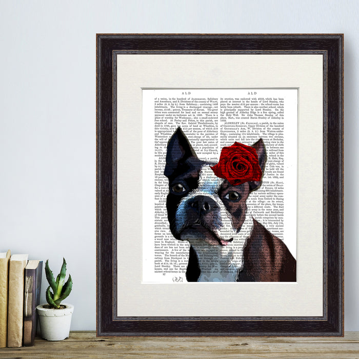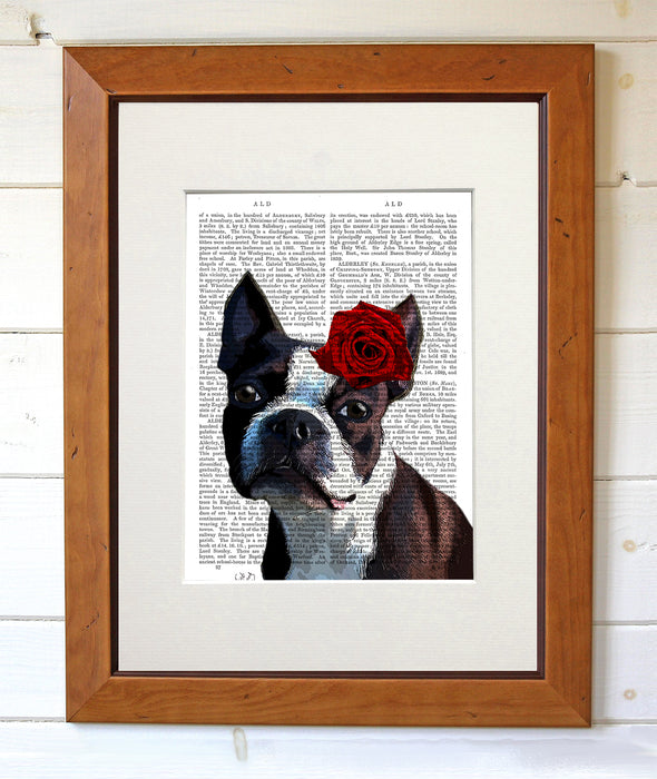 Boston Terrier Rose on Head Dog Book Print, Art Print, Wall Art