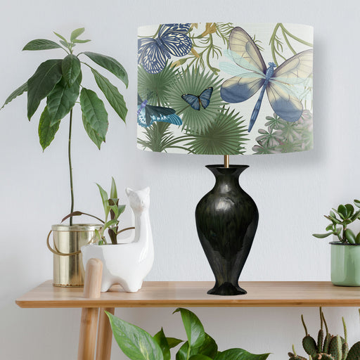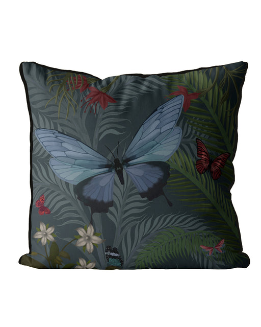 Colourful fantasy butterflies dance around exotic foliage in our glorious and dramatic Butterfly Garden Collection of throw cushions & lamp shades.