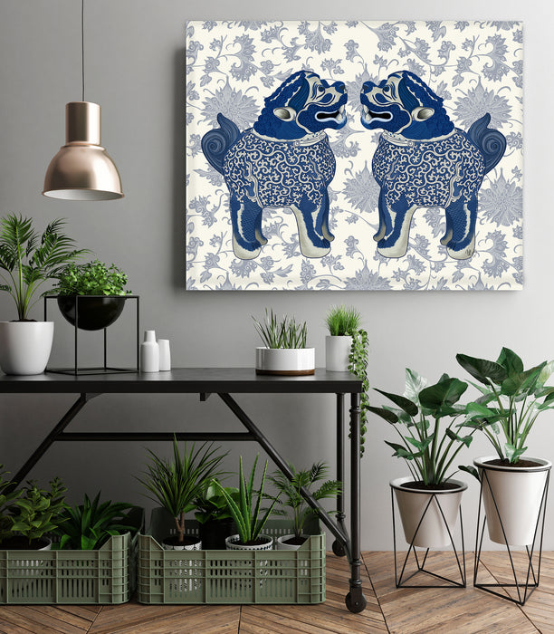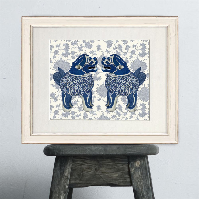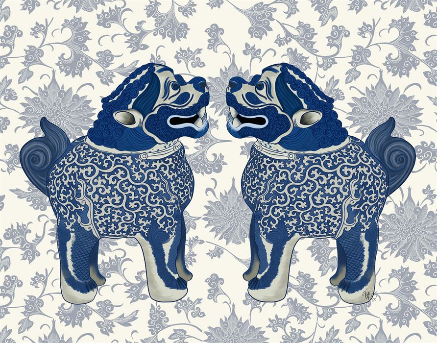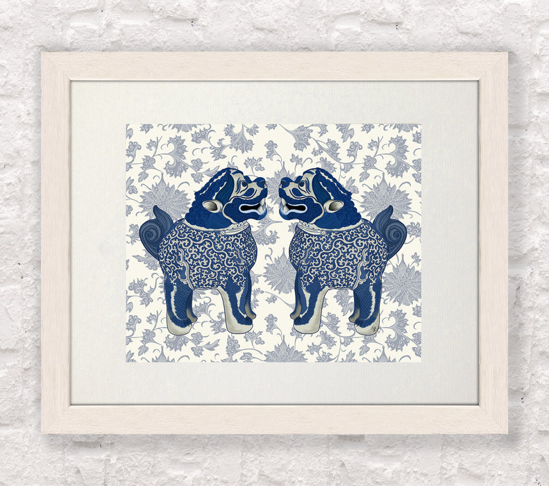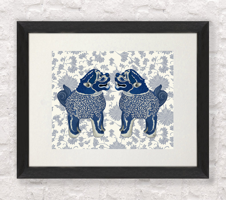 Foo Dog Twins Blue and White Chinoiserie Art Print