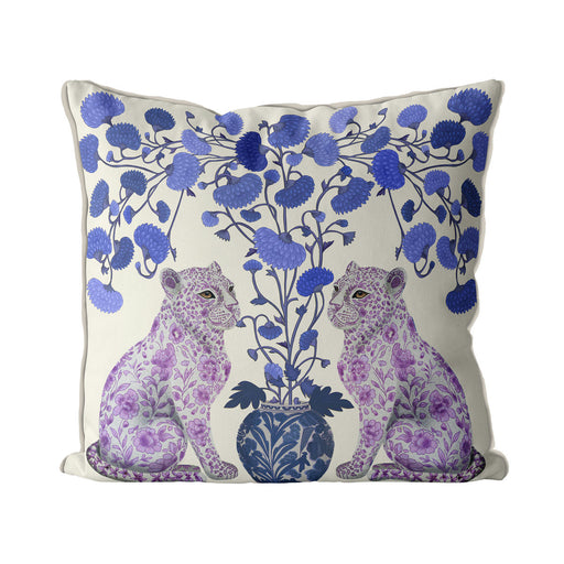 Chinoiserie Leopard Twins Blue Vase Cushion Pillow Choice of Luxury Velvet / Cotton / Outdoor