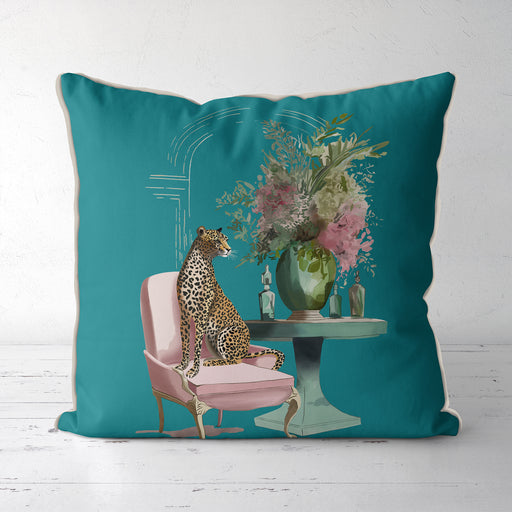 Chic Leopard Salon Pink & Green on Teal Cushion Throw Pillow