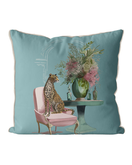 Chic Leopard Salon Pink & Green on Blue Cushion Throw Pillow