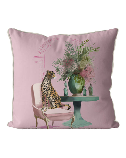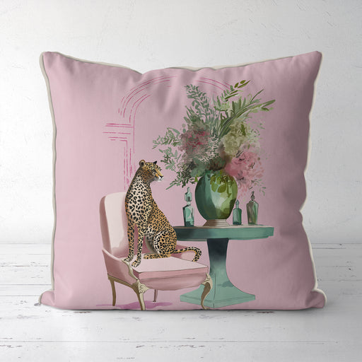 Chic Leopard Salon Pink & Green on Blush Pink Cushion Throw Pillow