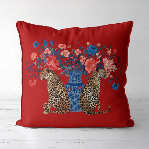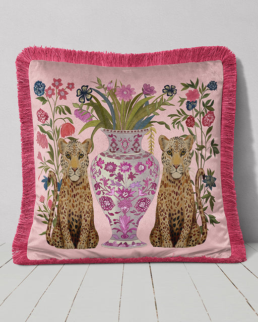 Chinoiserie Leopard Bouquet Twins Cushion Pillow Choice of Luxury Velvet / Cotton / Outdoor
