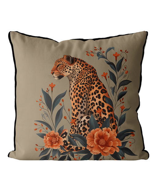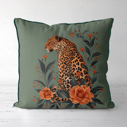 Leopard Orange Flowers 1 Cushion, Throw Pillow in Green or Taupe