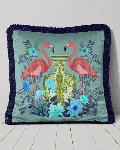 Chinoiserie Flamingo Twins Cushion Pillow Choice of Luxury Velvet / Cotton / Outdoor