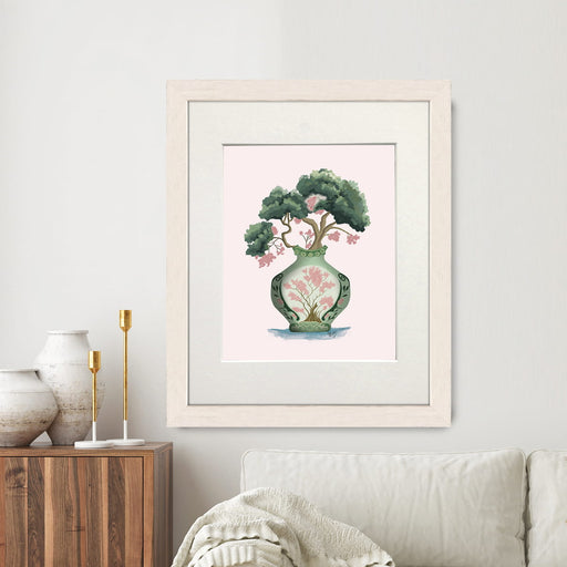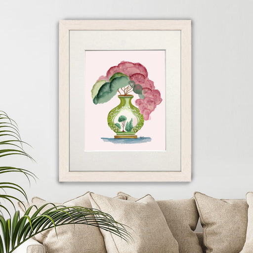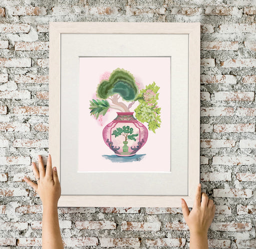 Pink Green Vase 2, Chinoiserie Art Print, Canvas art