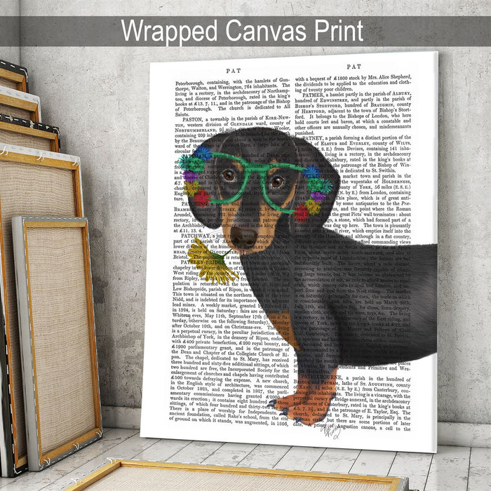 Dachshund Flower Glasses, Book Print, Dog Art Print, Wall Art