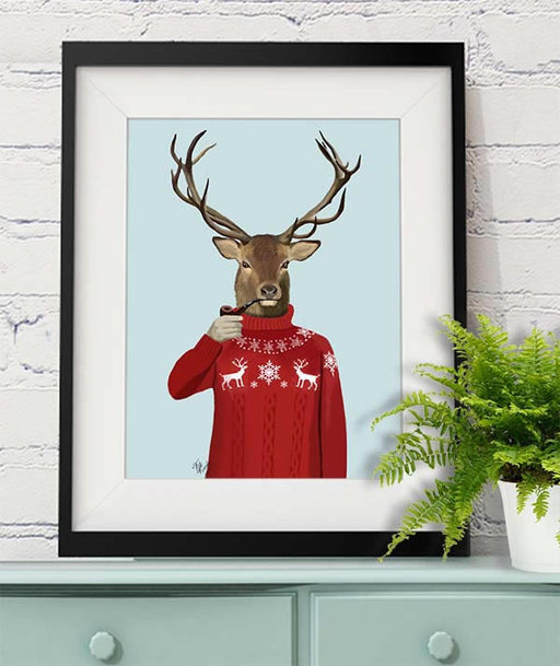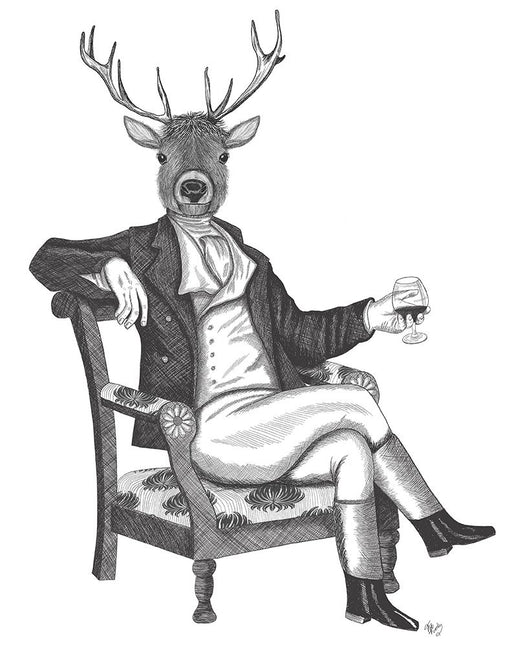 Deer in Smoking Jacket, Art Print, Canvas Wall Art