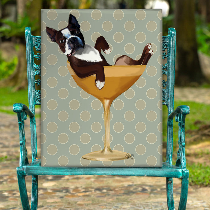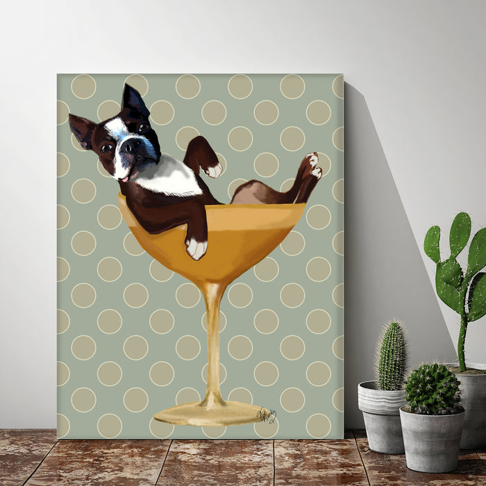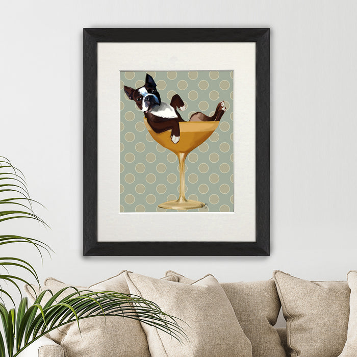 Boston Terrier in Cocktail Glass Dog Art Print, Wall Art