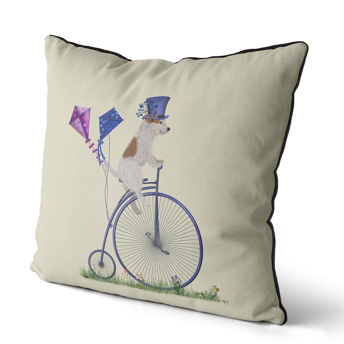 Jack Russell Smooth on Penny Farthing, Cushion / Throw Pillow