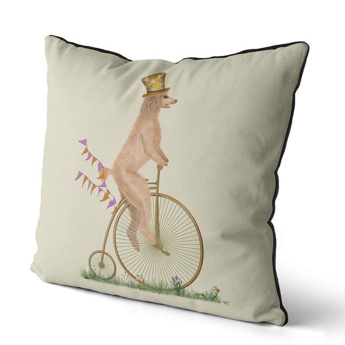 Poodle White on Penny Farthing, Cushion / Throw Pillow