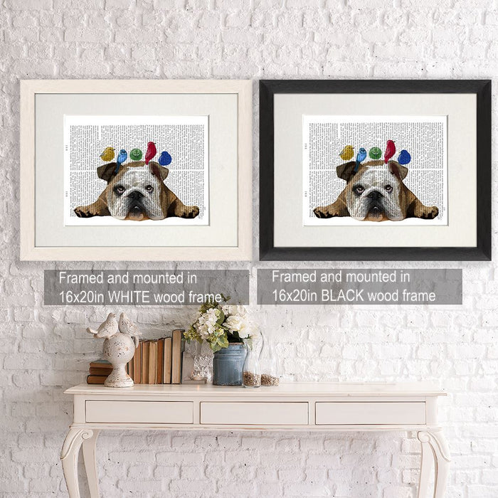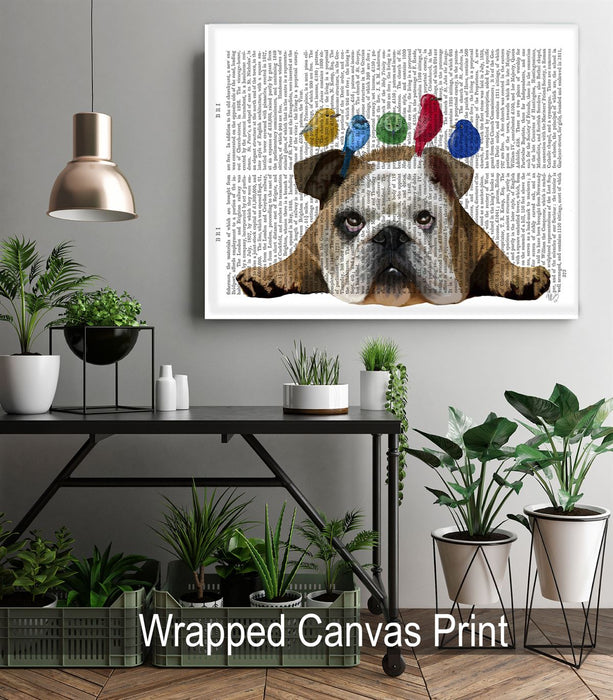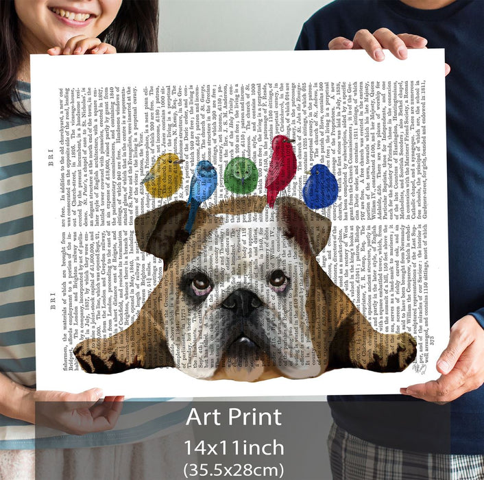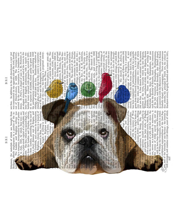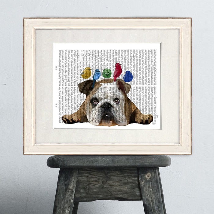 English Bulldog and Birds, Book Print, Dog Art Print, Wall Art