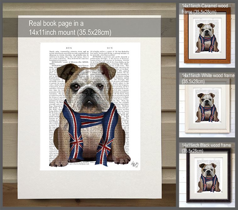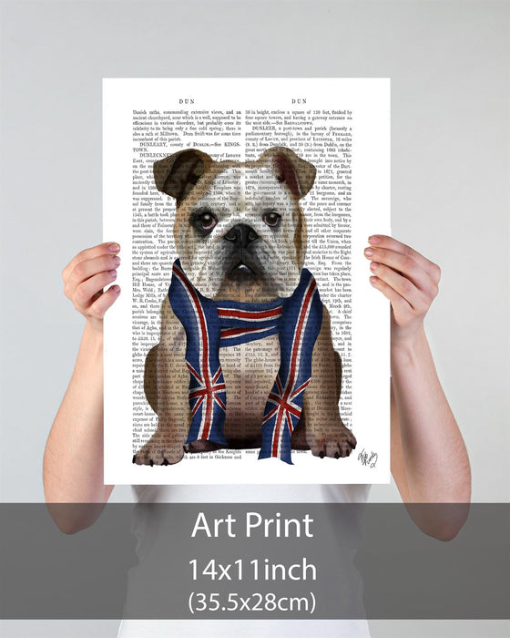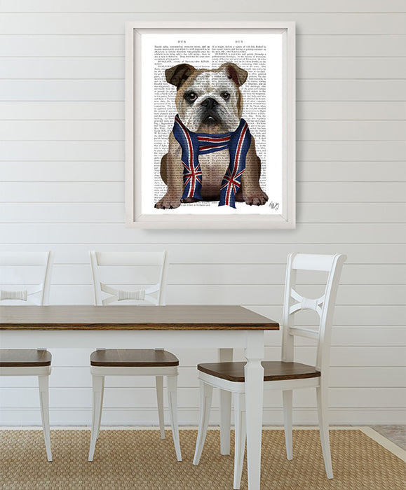 English Bulldog with Scarf, Book Print, Dog Art Print, Wall Art