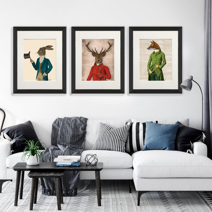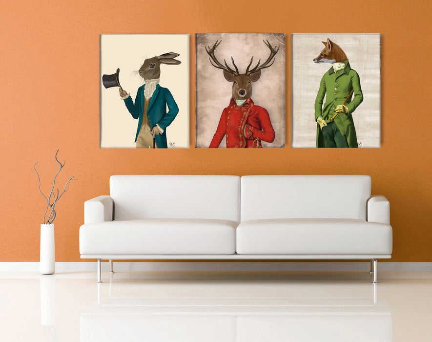 Collection - 3 prints, Regency Hare, Deer & Fox Art Print, Canvas Wall Art