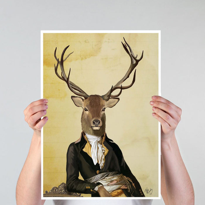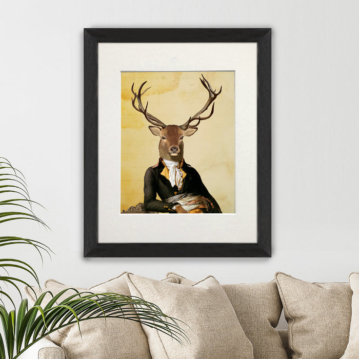 Deer and Chair, Portrait, Art Print, Canvas Wall Art