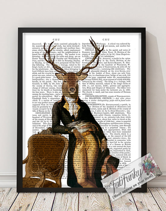 Deer and Chair, Full, Book Print, Art Print, Wall Art