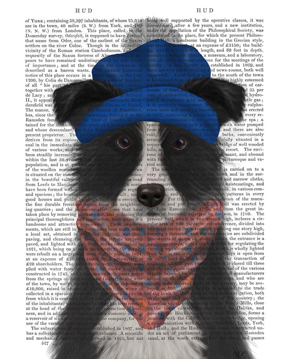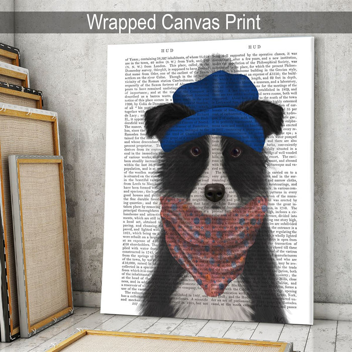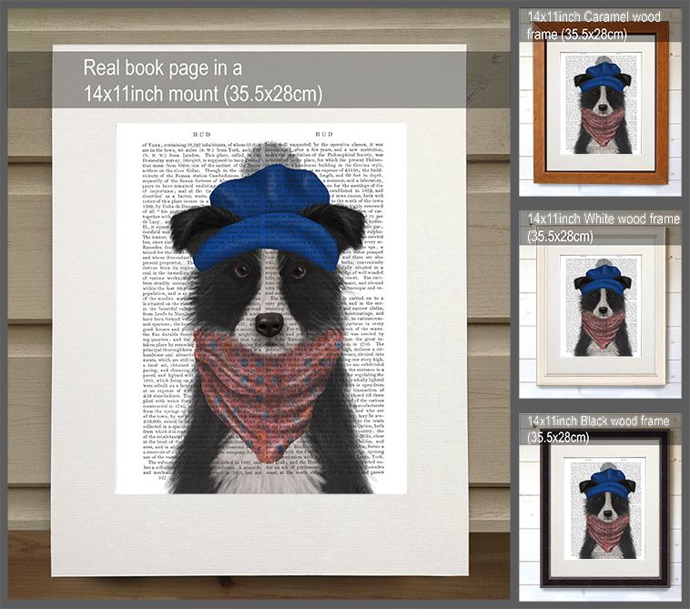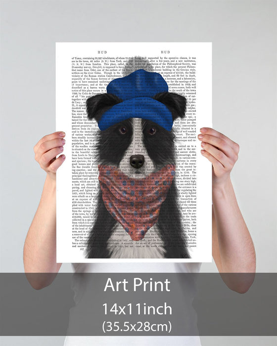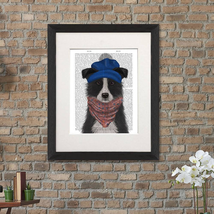 Border Collie in Blue Bobble Hat, Book Print, Dog Art Print, Wall Art