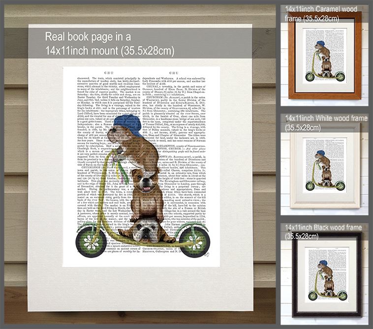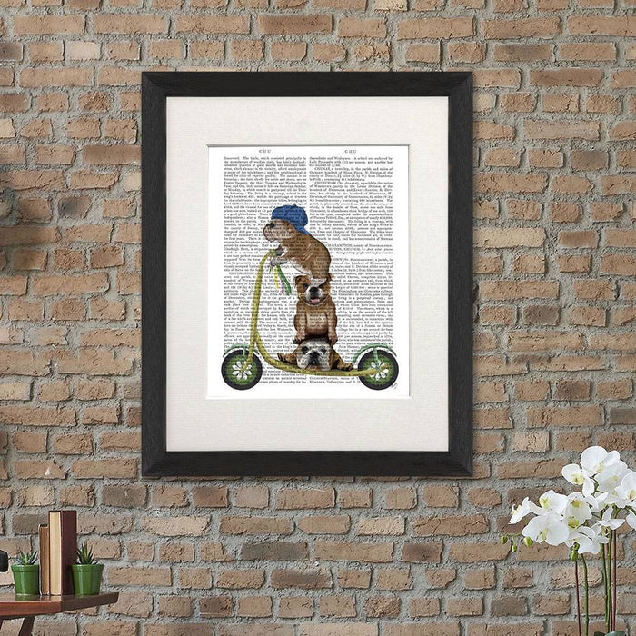 English Bulldog Scooter, Book Print, Dog Art Print, Wall Art
