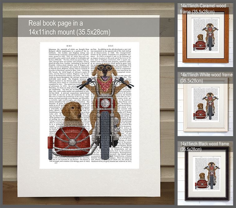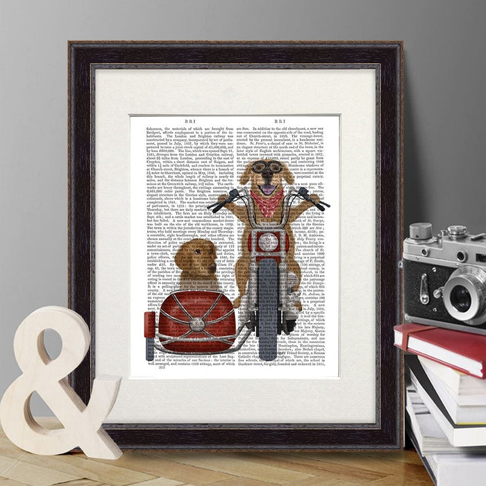 Golden Retriever Chopper and Sidecar, Book Print, Dog Art Print, Wall Art