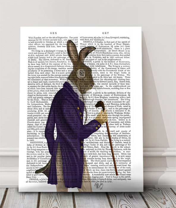 Regency style Hare with monocle and purple coat.