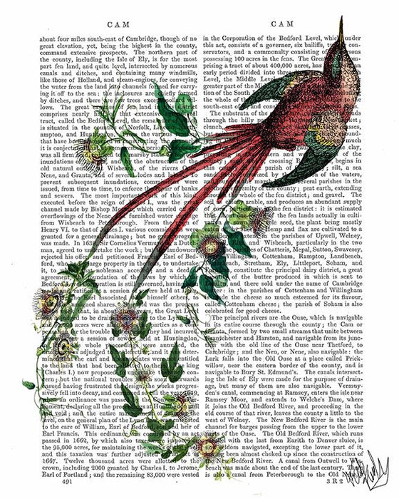 Passion Flower Bird, Book Print, Art Print, Wall Art