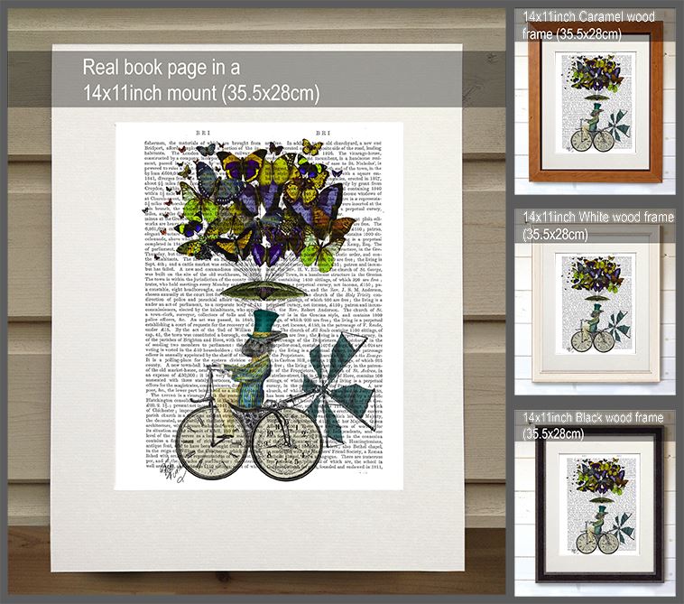 The pages are mounted into a white/ivory coloured mat with a backing board and are ready for you to pop into your own frame. You will need a 14x11in / 35.56x28cm frame, which is a standard size in the UK and US.