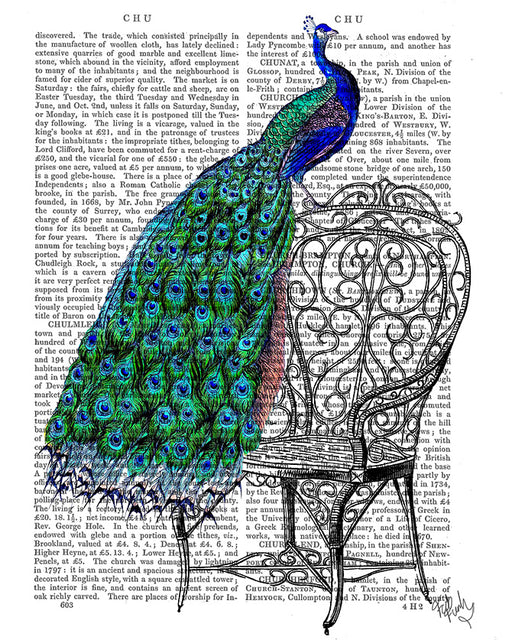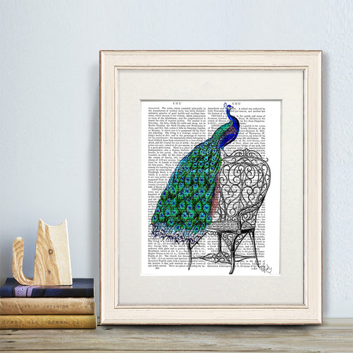 Peacock on Vintage Garden Chair, Book Print, Art Print, Wall Art