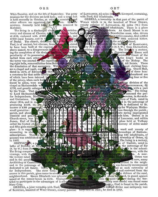 Victorian Woman with Blue Birds On Head, Book Print, Art Print, Wall Art