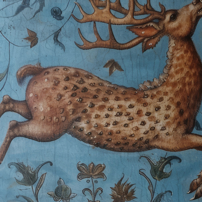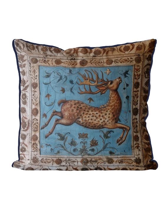 Bring a touch of whimsy and medieval charm to your home with Hoof Hearted, a stunning cushion featuring a leaping stag surrounded by intricate floral and nature-inspired details. With its rich, vintage tones and captivating design, this piece exudes elegance and personality, making it a perfect addition to any nature-themed or cottagecore-inspired decor.