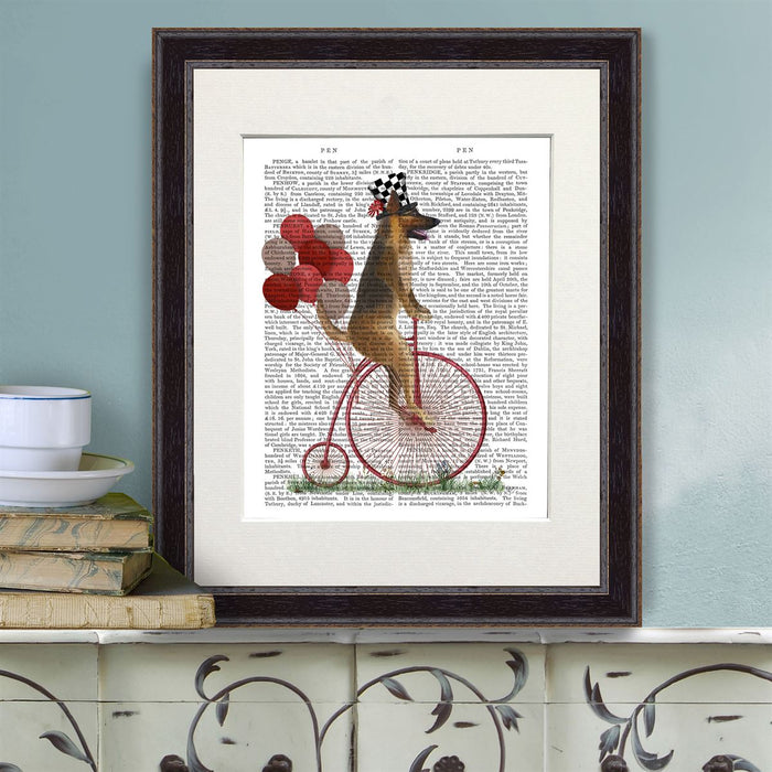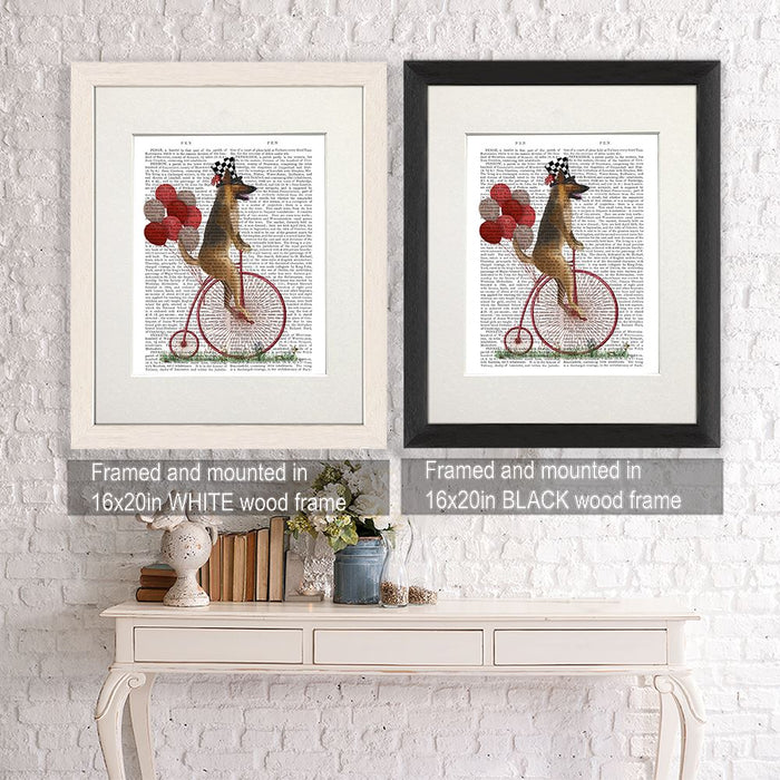 German Shepherd on Penny Farthing, Book Print, Dog Art Print, Wall Art