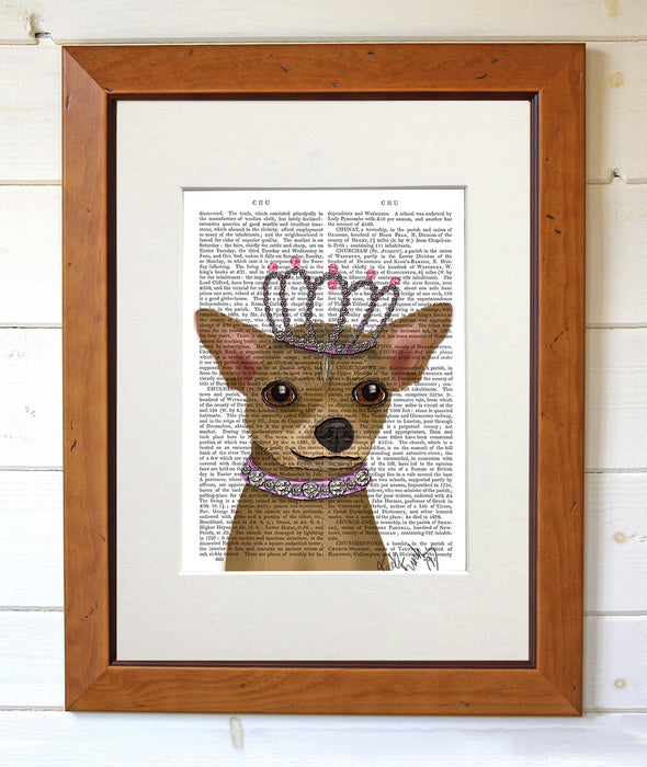 Chihuahua in Tiara Dog Book Print, Art Print, Wall Art