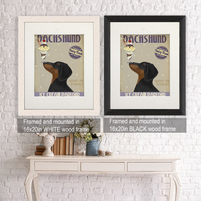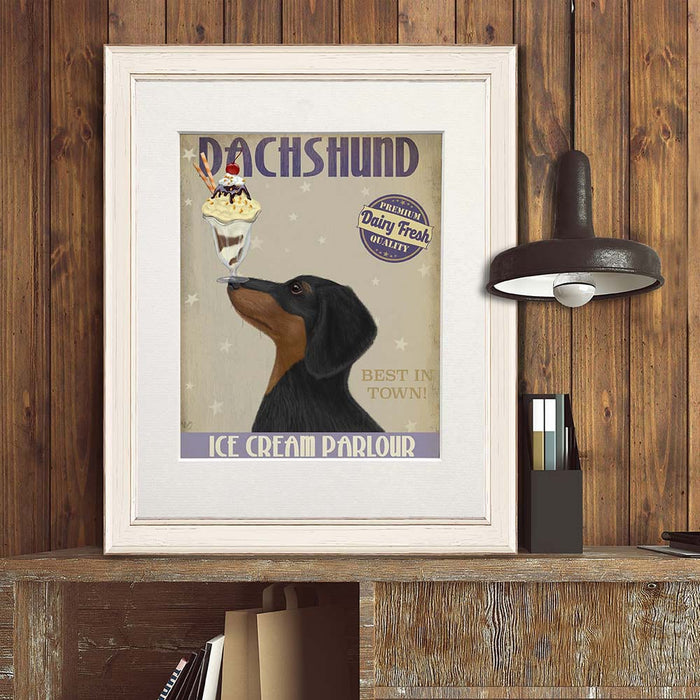 Dachshund, Black and Tan, Ice Cream, Dog Art Print, Wall art