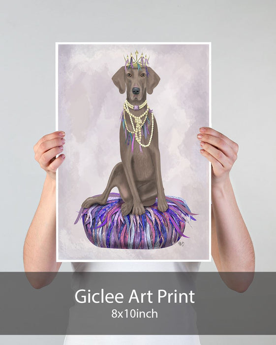 Weimaraner on Purple Cushion, Dog Art Print, Wall art