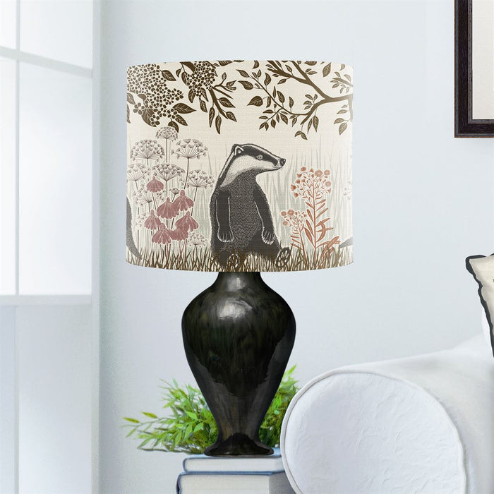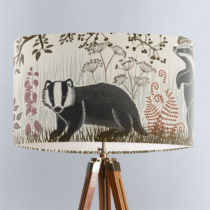 Inspired by British woodlands and nature, this adorable forest wildlife themed lamp shade is from our Country Lane Collection, and features an assortment of charming badger illustrations in a rustic forest setting.