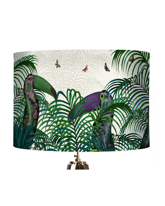 Stunning fantasy lampshade featuring exotic toucans, designed by FabFunky.