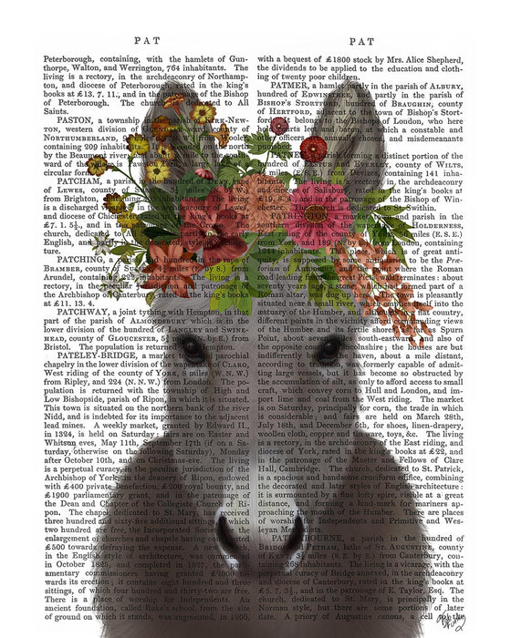 Our antiquarian book prints started out as original illustrations by British artist Kelly Stevens McLaughlan, printed onto the original pages of antique British dictionaries and journals from the 1800’s.