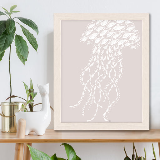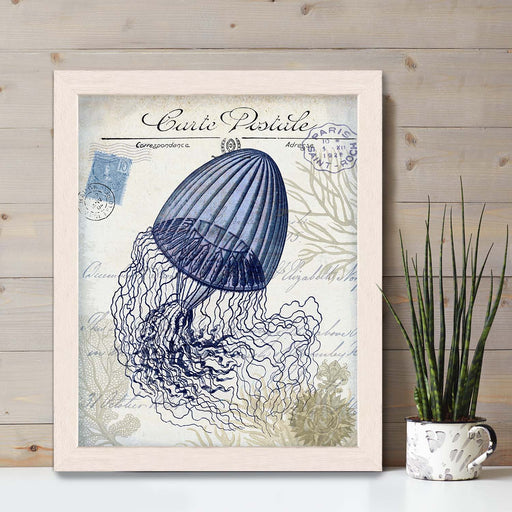 Seaside Postcard, Cream, Jellyfish, Nautical print, Coastal art