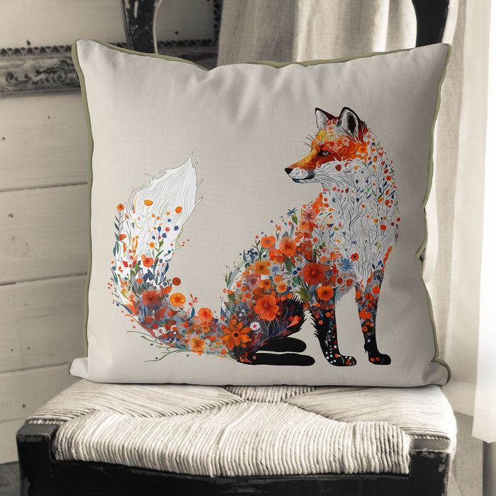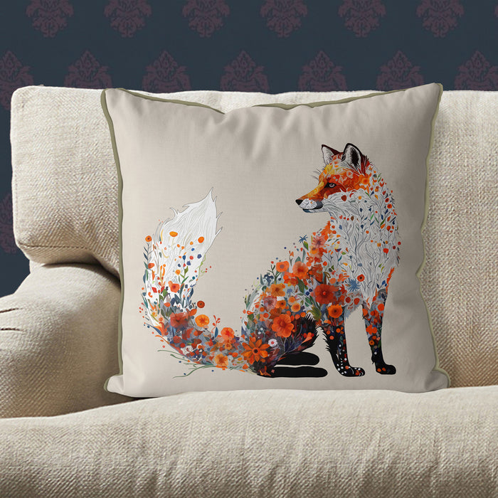 Fox 1 Floral Essence Woodland Animal Cushion / Throw Pillow