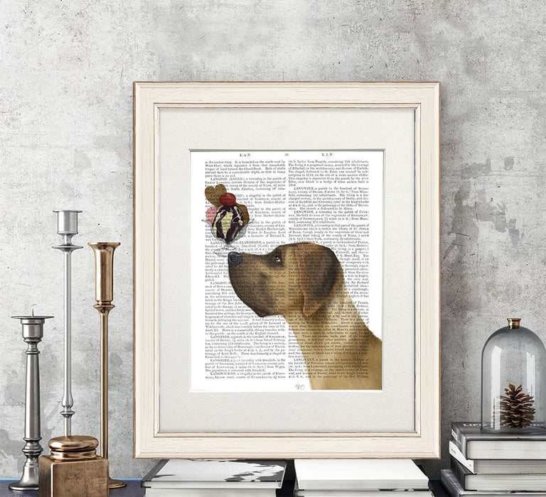Great Dane, Tan, Ice Cream, Book Print, Dog Art Print, Wall Art