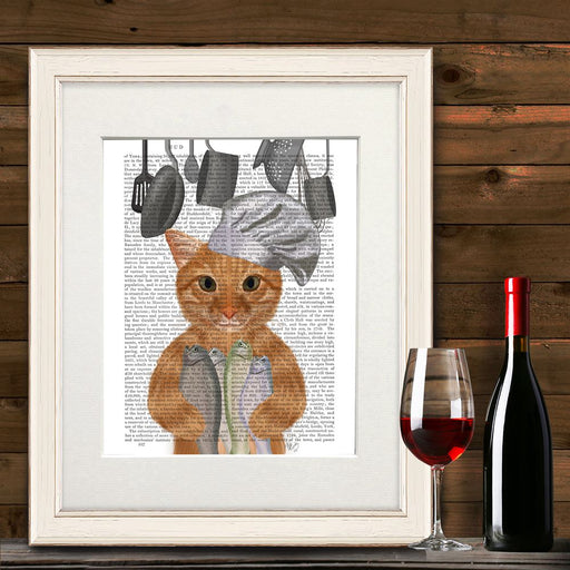 Ginger Cat Fish Chef, Full, Book Print, Art Print, Wall Art